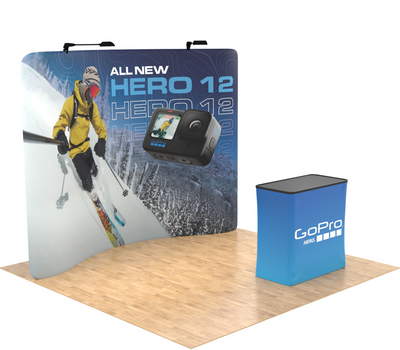 This versatile trade show display allows you to choose from a single or double-sided print. Double-sided graphics allow you to market to different demographics or showcase multiple products, depending on the trade show. Add on a hard case* (converts into a functional podium!) with a custom graphic counter skirt and LED lights to complete the look. Want to catch a trade show goer's eye? Add a header to give you an additional foot of height on top! Be sure to check out our Tru-Fit Viper banner stands if you're looking to add extra marketing power to your trade show display!