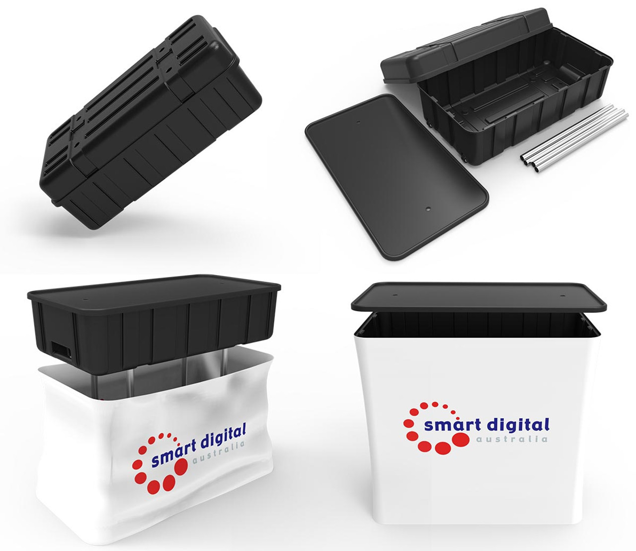 This versatile trade show display allows you to choose from a single or double-sided print. Double-sided graphics allow you to market to different demographics or showcase multiple products, depending on the trade show. Add on a hard case* (converts into a functional podium!) with a custom graphic counter skirt and LED lights to complete the look. Want to catch a trade show goer's eye? Add a header to give you an additional foot of height on top! Be sure to check out our Tru-Fit Viper banner stands if you're looking to add extra marketing power to your trade show display!
