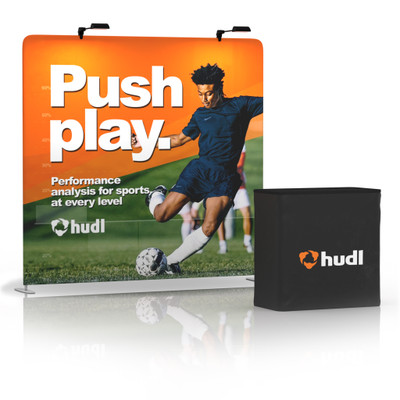 This package includes the frame, graphic, and nylon carrying bag. But why stop there? Upgrade to two LED lights to make your brand shine. The hard case transports your Tru-Fit trade show display to/from shows with ease and converts into a podium with a podium graphic for added brand marketing. Make this a double-sided print for twice the marketing genius and use it at different events.