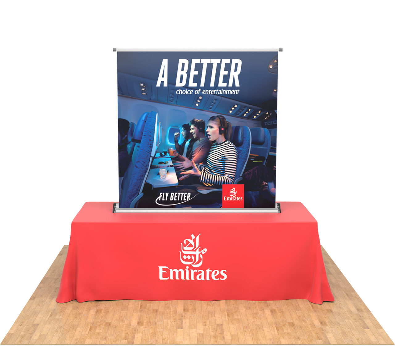 The Silver Step series tabletop banner stand is highly regarded amongst the best in the business and has the ability to interchange graphics quickly and effectively. The Silver Step banner stand is available in a variety of sizes: 24", 36", 48", or 60". The telescoping rod allows you to extend your graphic anywhere from 45" to 54" high (see templates). This trade show display is the perfect complement for our larger exhibit booths.